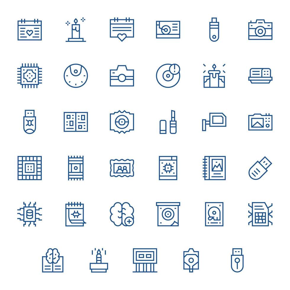 35 Icons for Memory optimized in Pixel Optimized 128x128 Regular Line resolution vector