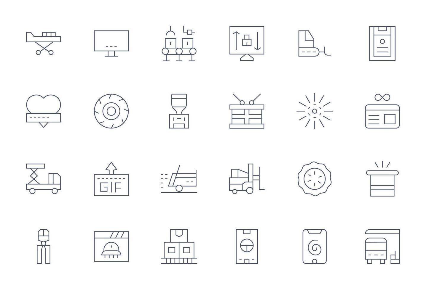 24 Grid Fitted Thin Line Icons from Loading Collection Free Vector