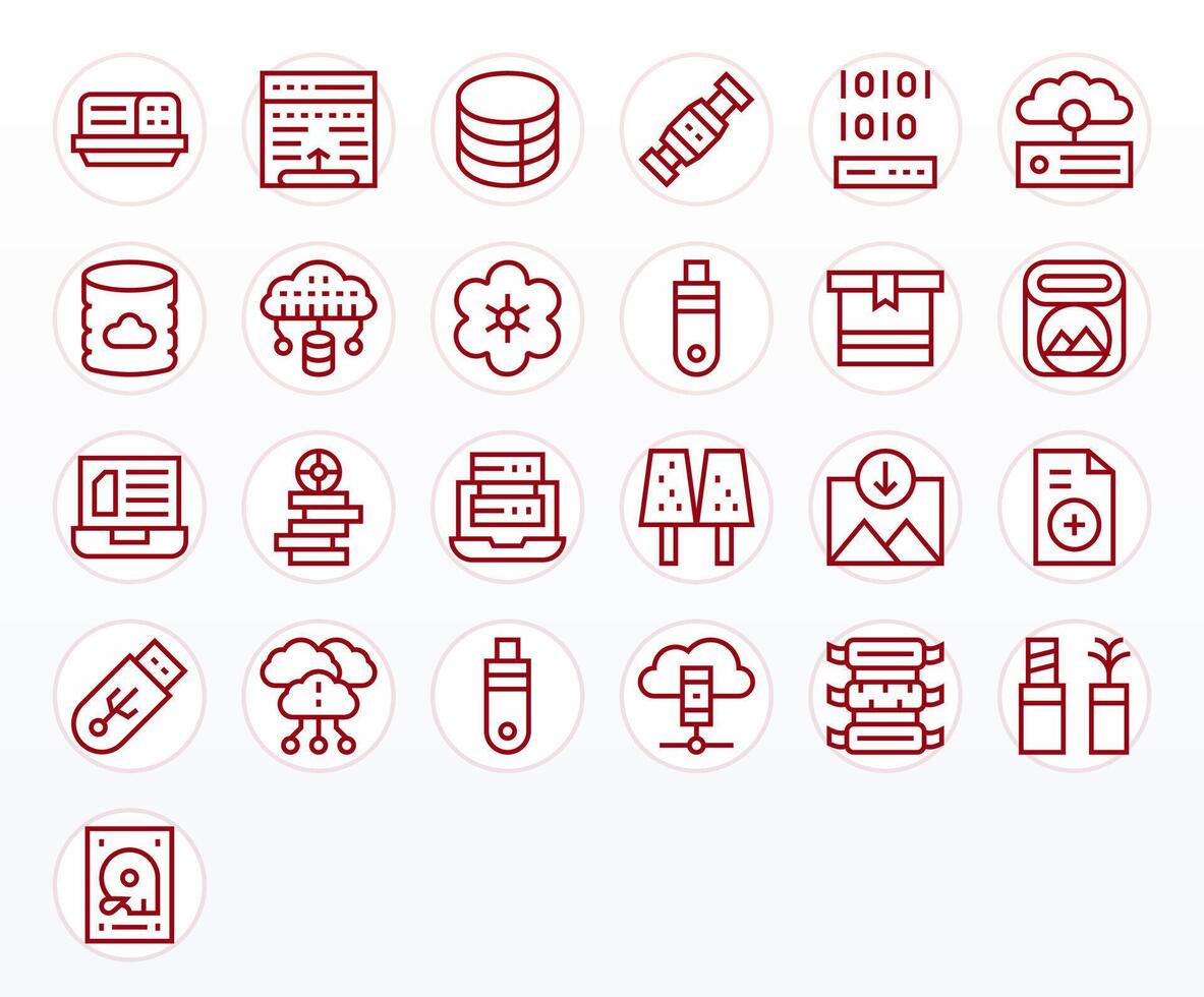25 File Storage Pixel Optimized Icons in High Resolution Regular Line Aesthetic vector