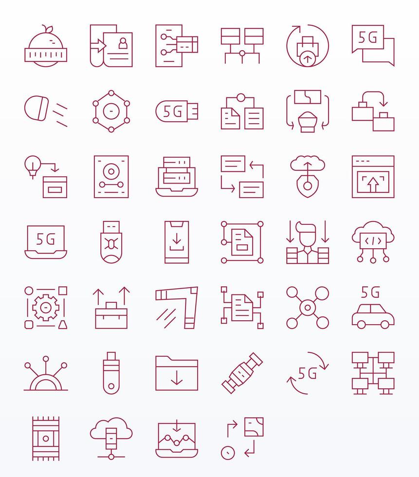 40 Thin Line Icons for Data Transfer in crisp 128x128 PIXEL Perfect resolution vector