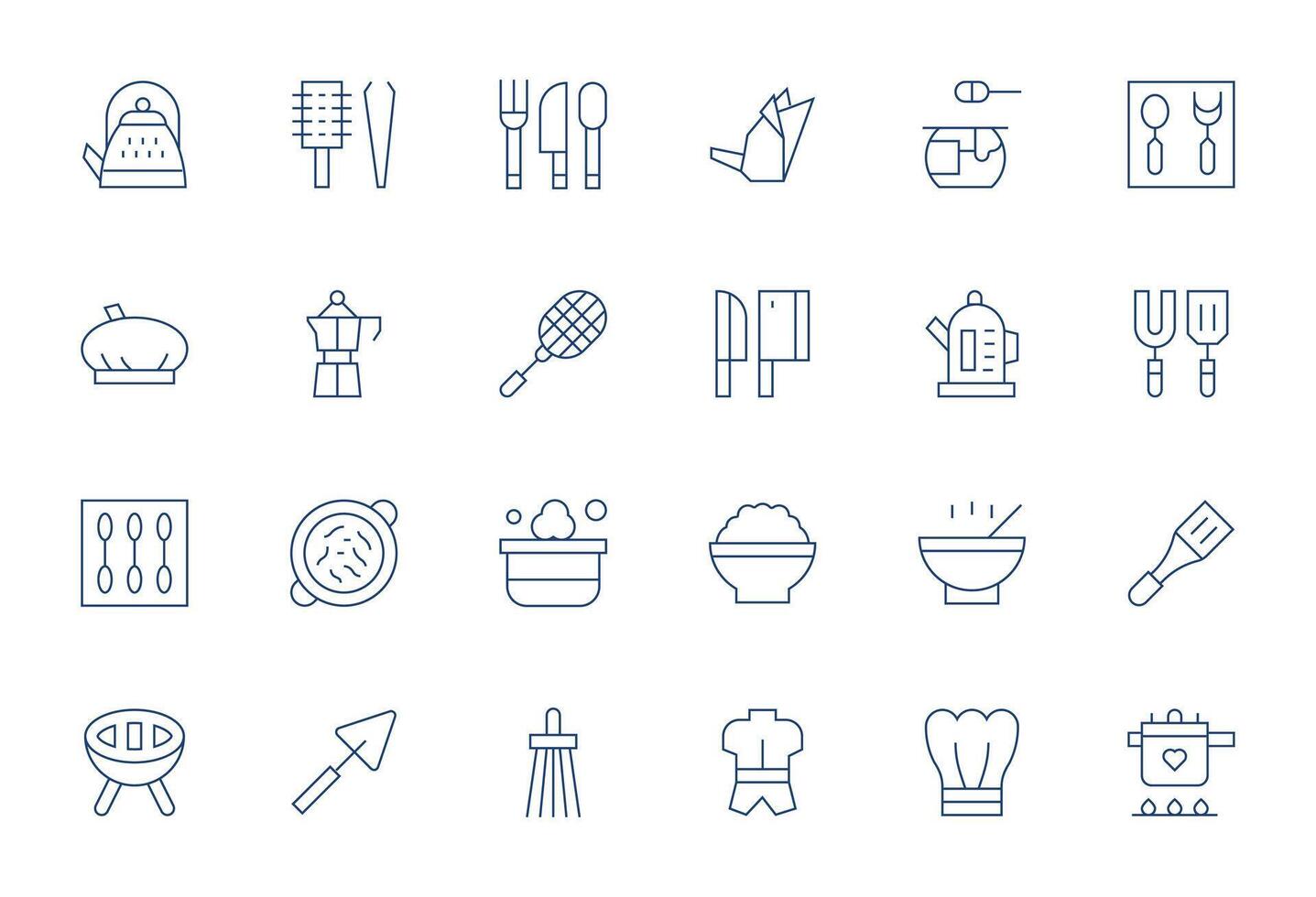 Cookware Icon Arsenal with 24 High Resolution Thin Line Pixel Optimized designs vector