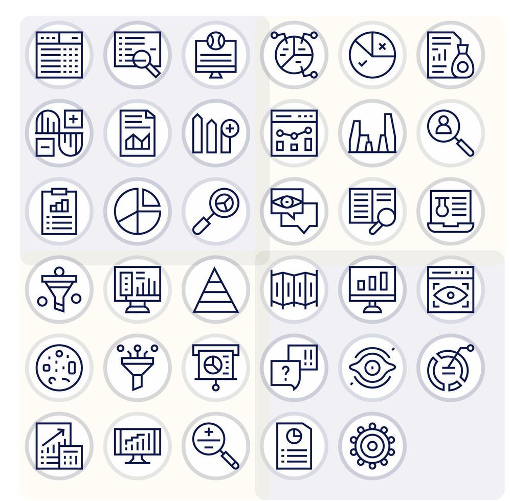 35 High Resolution Icons for Data Analysis with Display Perfect Regular Line clarity Free Vector