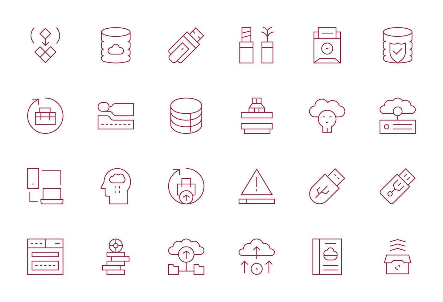 24 Display Perfect Icons themed around Data Backup in High Resolution Thin Line format vector