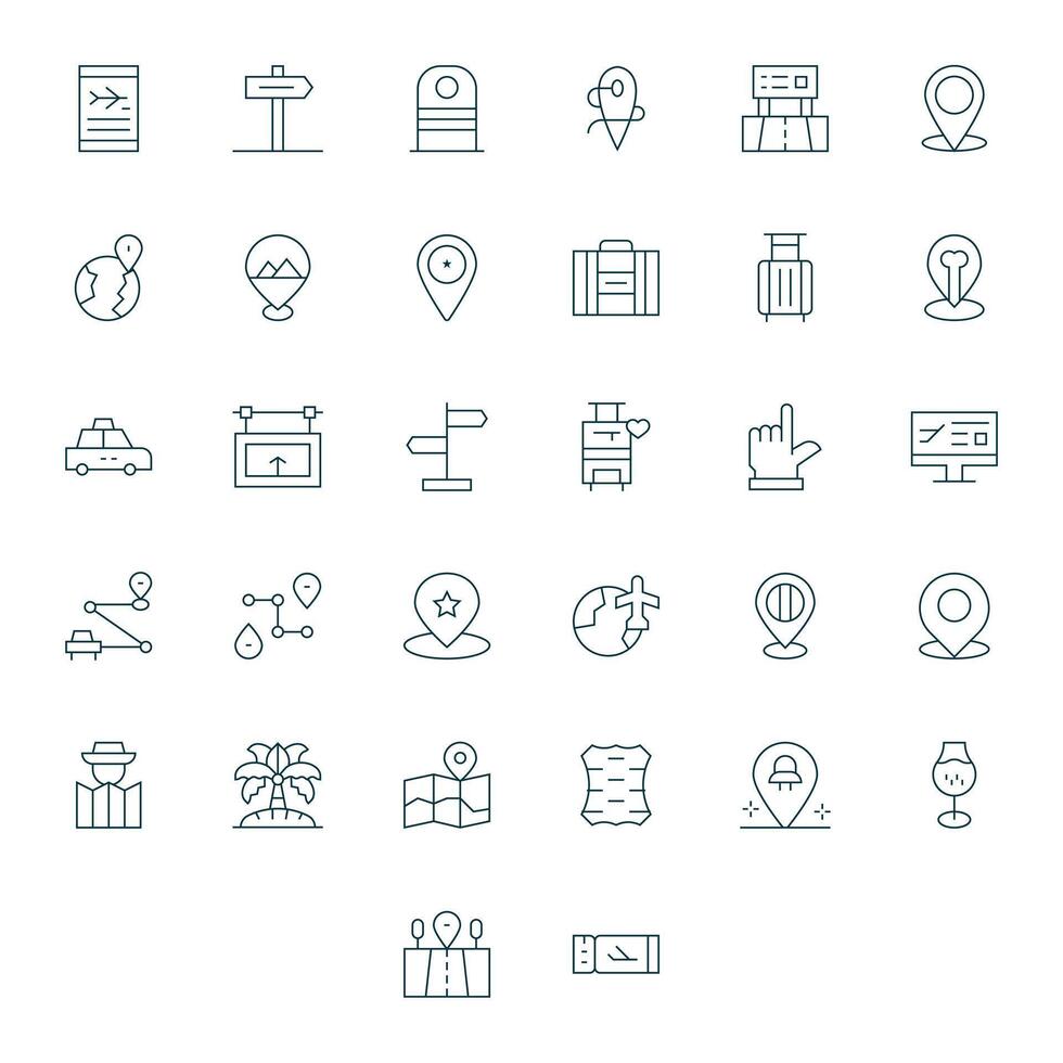32 Thin Line Pixel Optimized Vectors for Destination Theme Free Vector