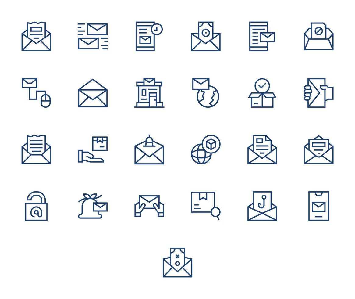 25 Icons inspired by Mail in Pixel Aligned High Resolution Regular Line quality vector