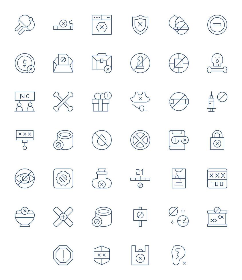 Not Allowed Graphics featuring 40 Thin Line Pixel Optimized 64x64 Designs Free Vector