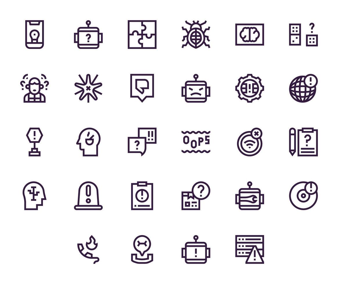 Problem Scalable Set featuring 28 Display Perfect Bold Line High Resolution Icons Free Vector