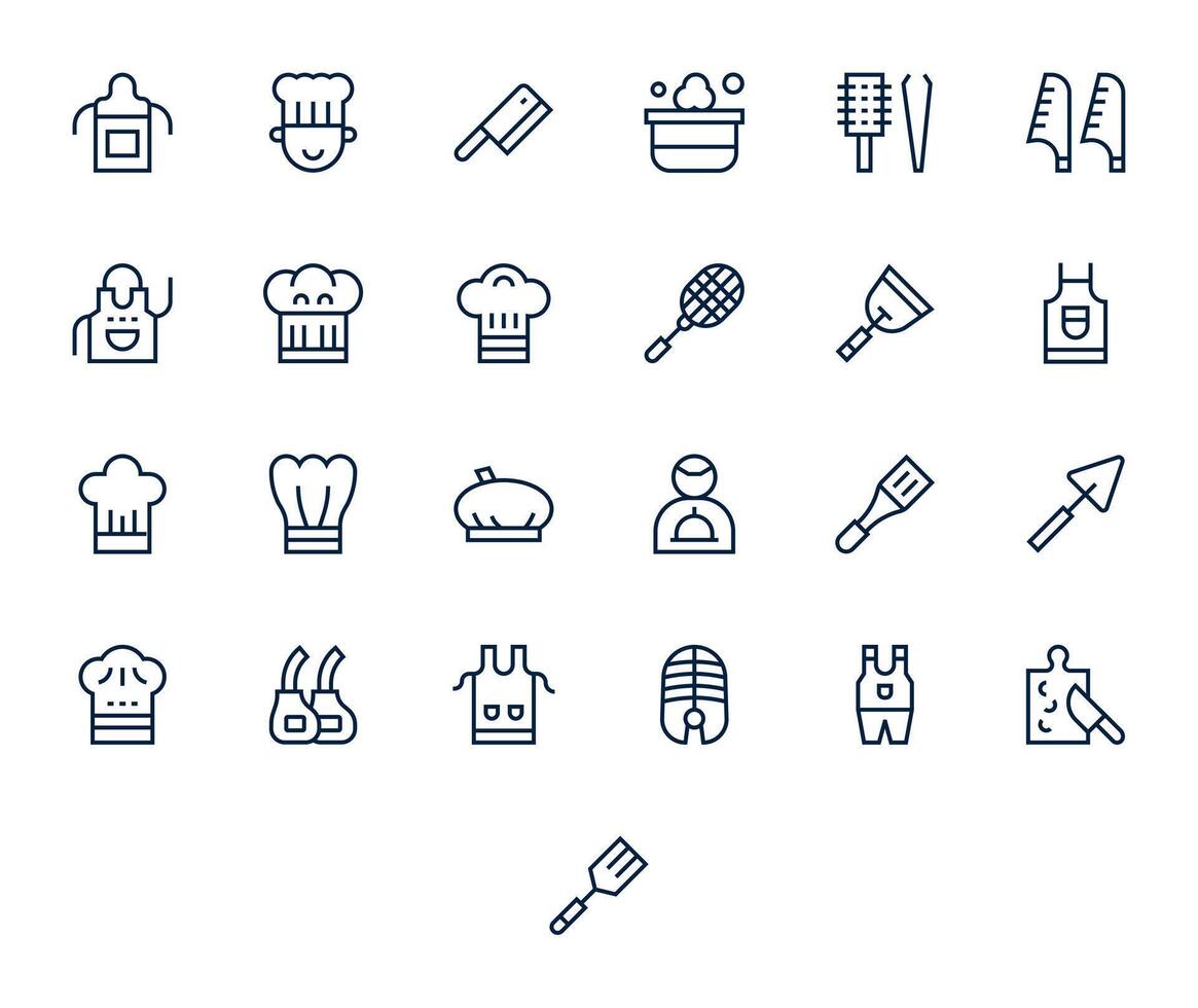 25 Regular Line Pixel Optimized Icons crafted for Chef 64x64 applications vector