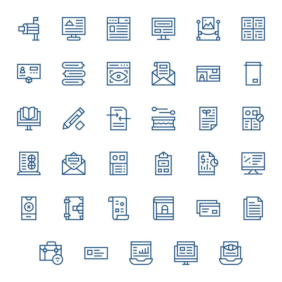 Document Complete Package with 35 High Resolution Regular Line Display Perfect Icons Free Vector