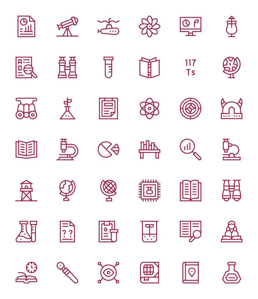 Research Icon Set with 42 Regular Line High Resolution Display Perfect Graphics Free Vector