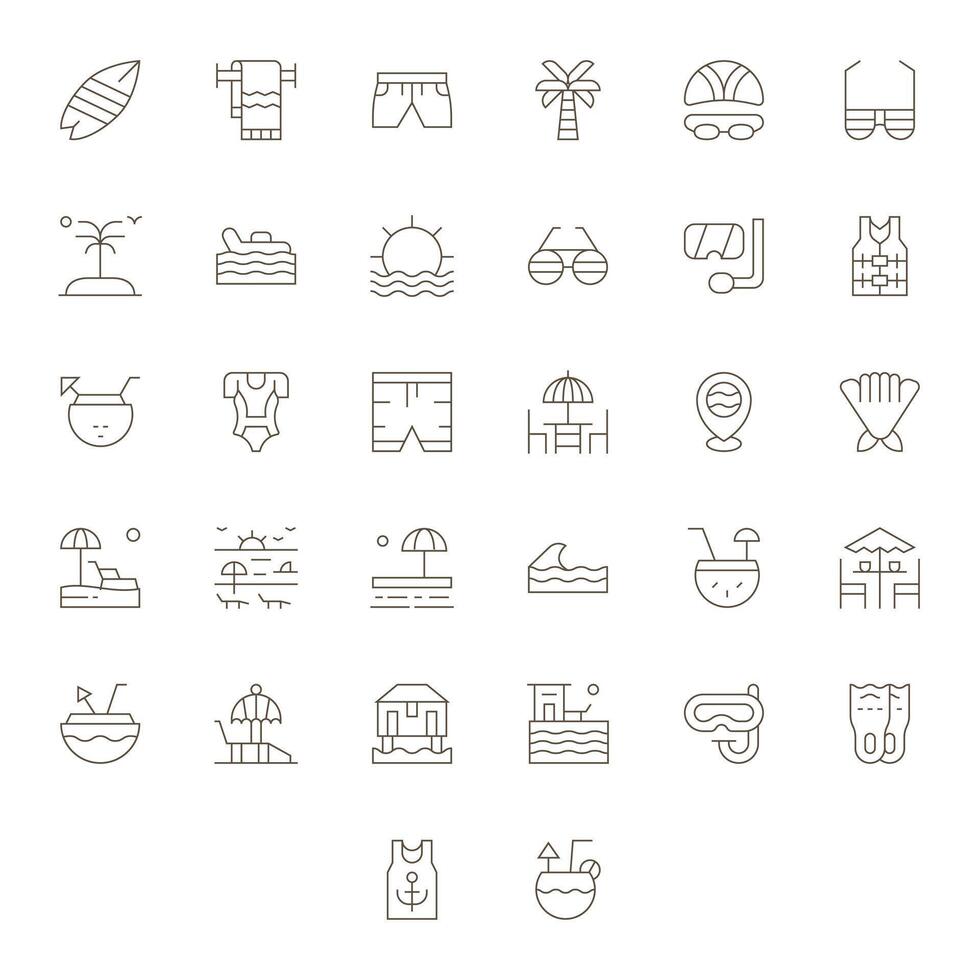 Beach Icon Repository containing 32 Thin Line 64x64 Pixel Optimized graphics Free Vector