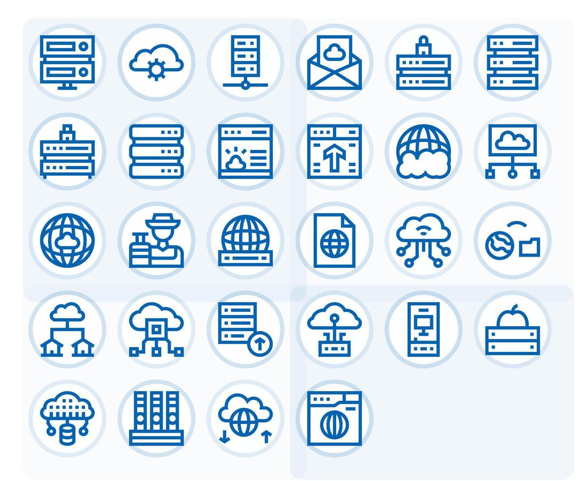 28 Pixel Optimized Icons themed around Hosting in 64x64 Bold Line format vector