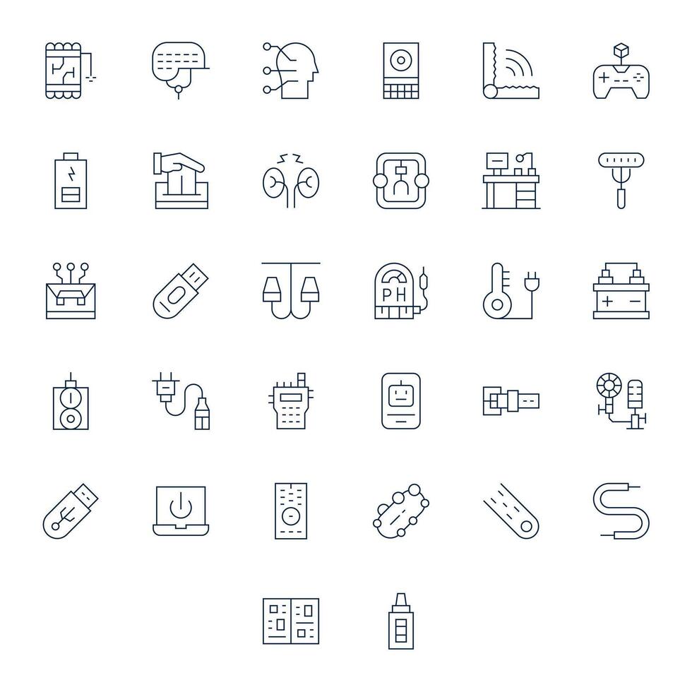 Electronics Comprehensive Bundle with 32 Editable Thin Line 256x256 Icons vector