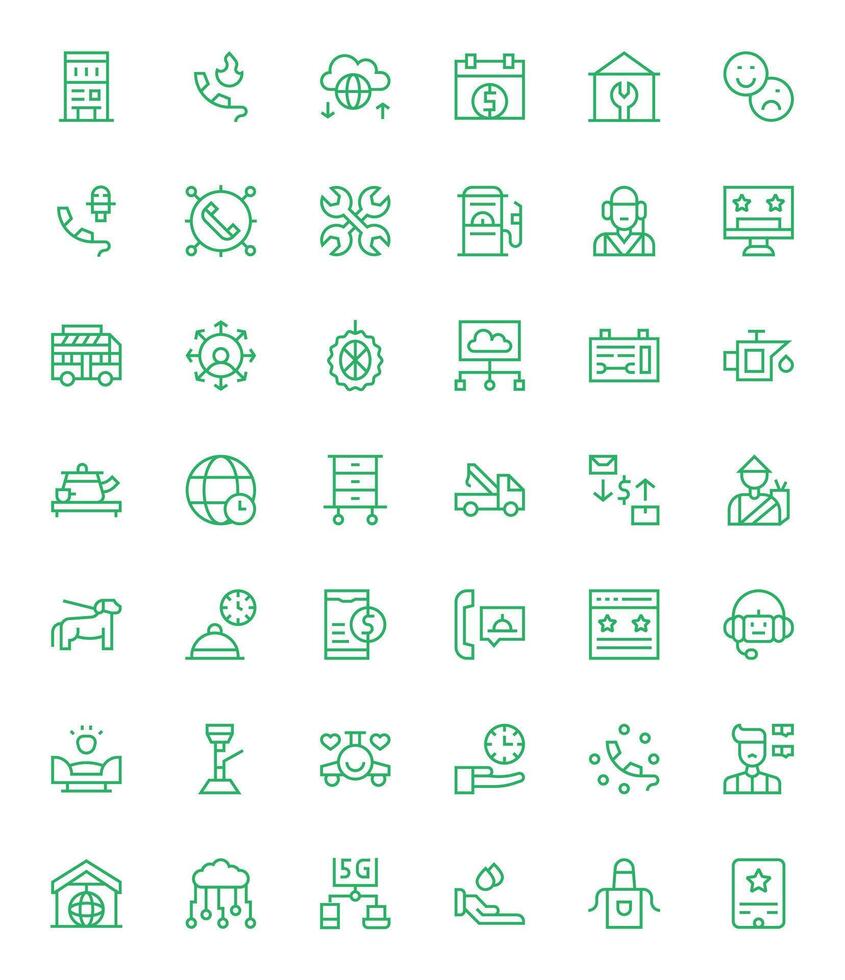 42 Pixel Optimized Regular Line Icons designed for Service Interface Free Vector