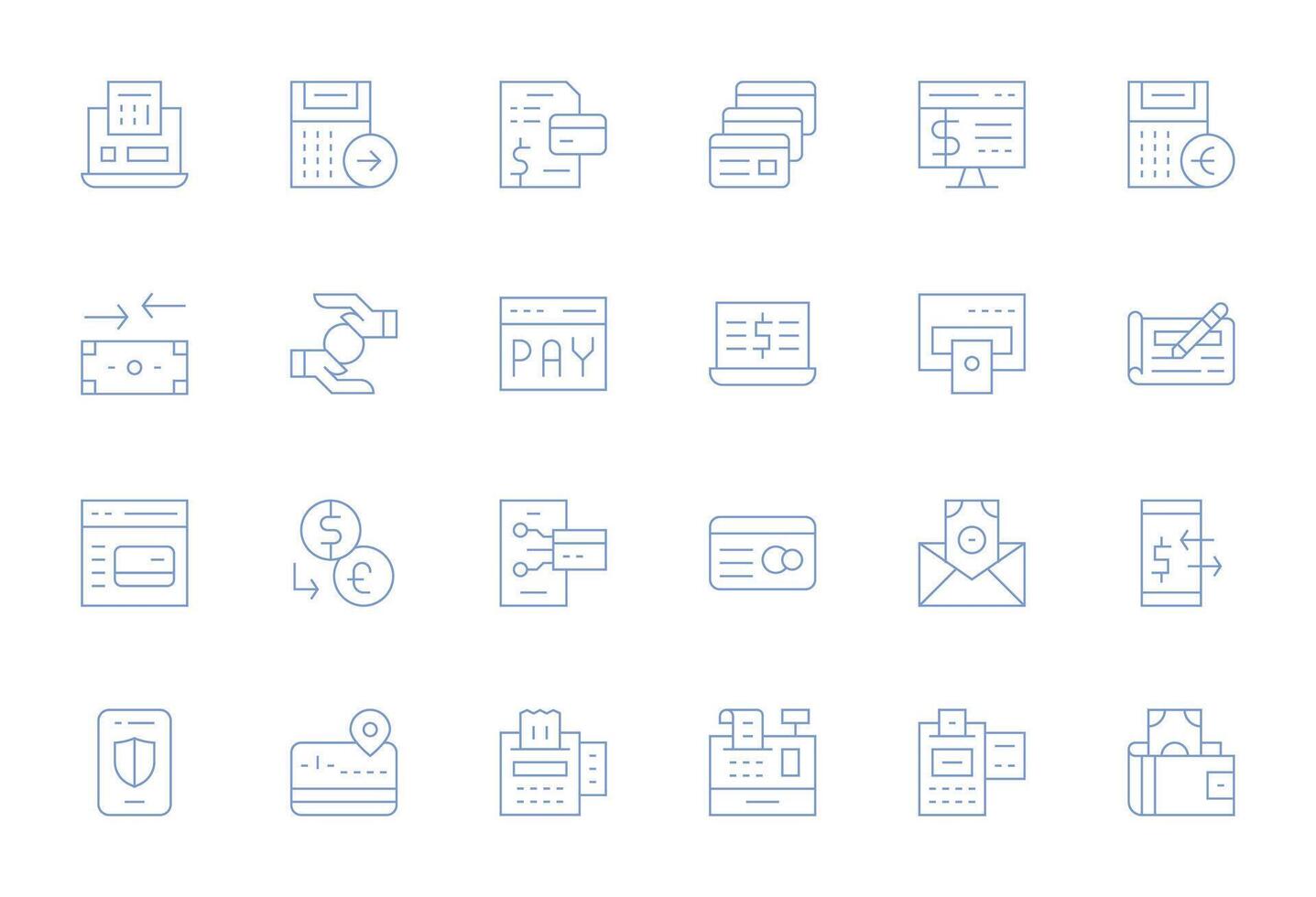 Payment Processing High Resolution Icon Pack with 24 Thin Line Detail Enhanced Elements vector