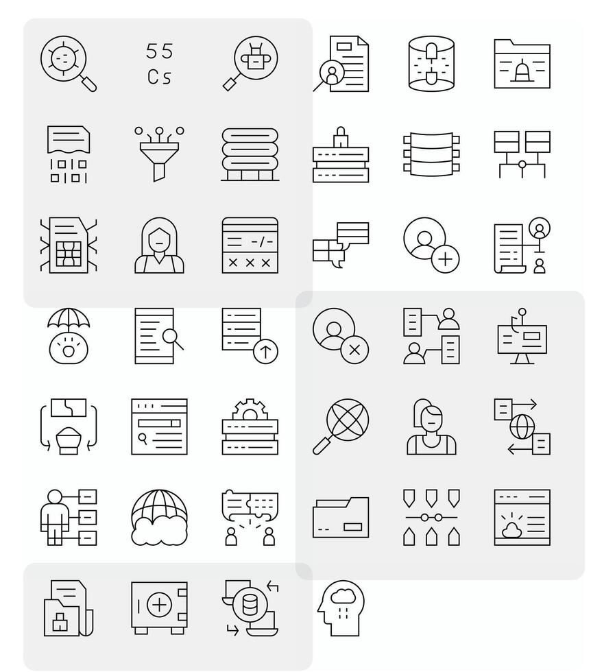 40 128x128 Thin Line Icons for Database with PIXEL Perfect precision Free Vector