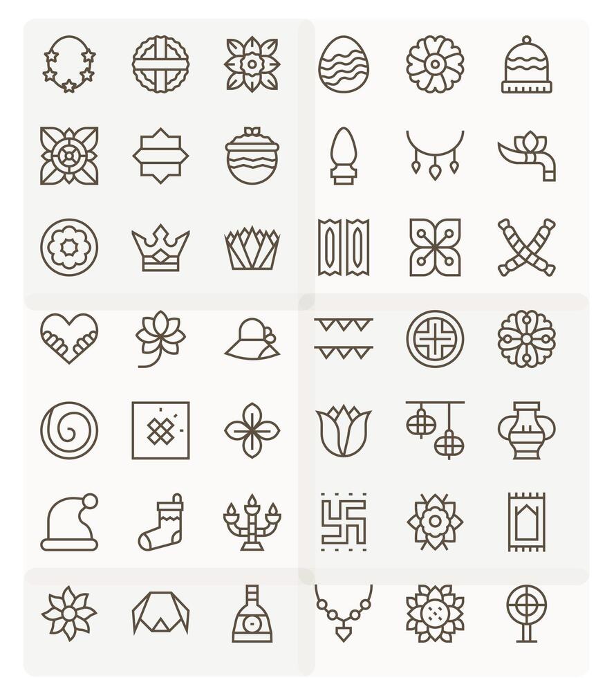Ornament Icon Toolkit featuring 42 Pixel Optimized 256x256 Regular Line elements vector