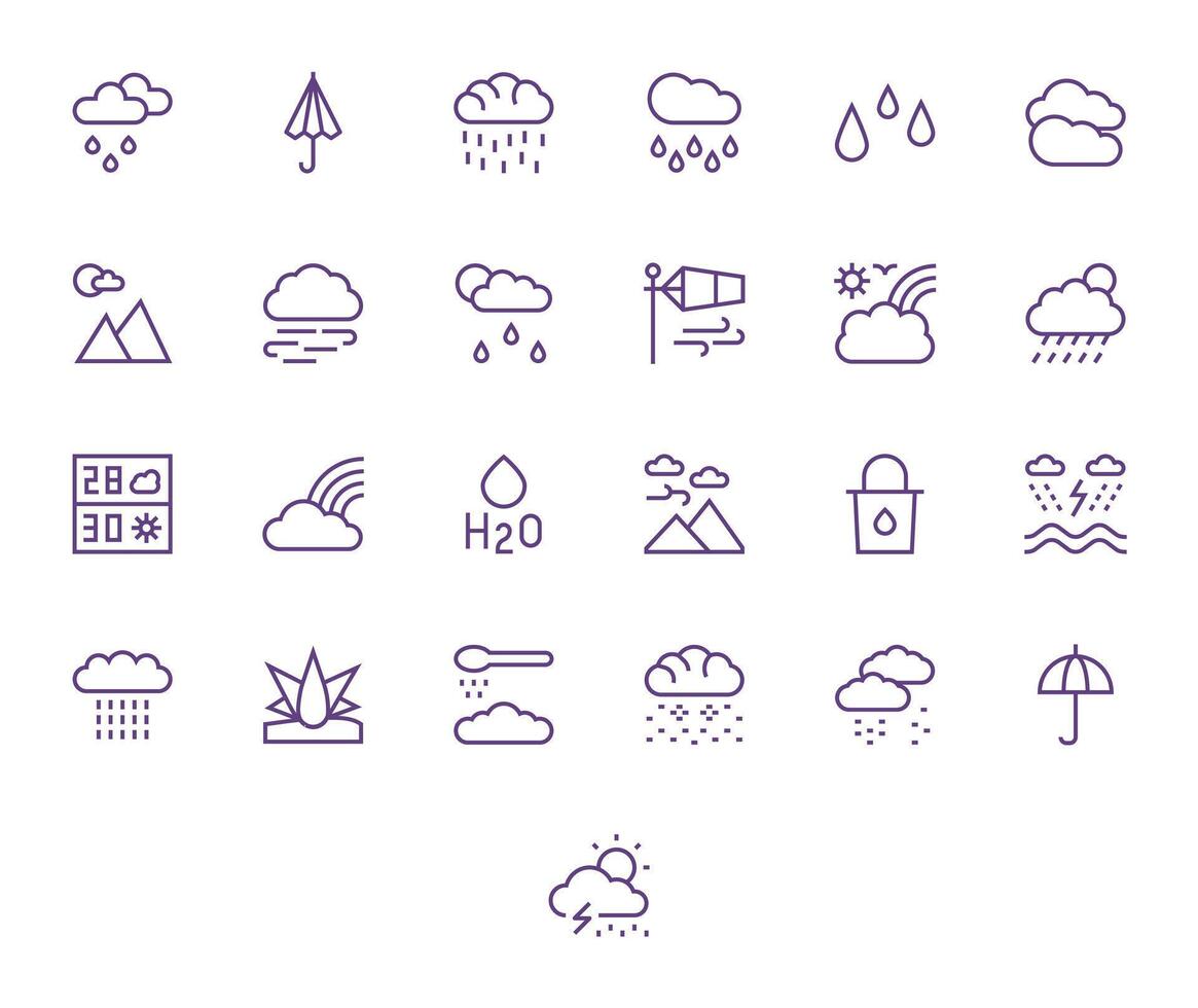 Rain Comprehensive Bundle with 25 Grid Fitted Regular Line 64x64 Icons Free Vector