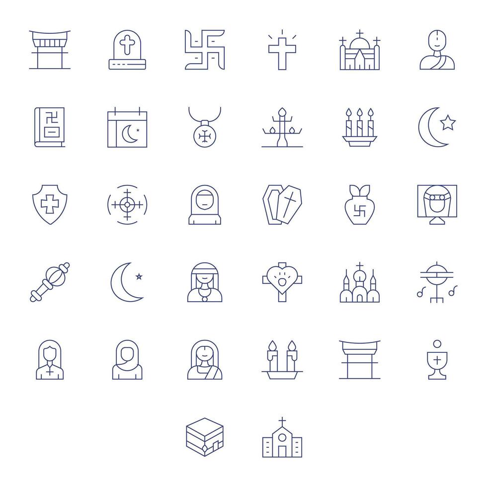Religious Professional Set with 32 Thin Line Pixel Aligned High Resolution Icons Free Vector