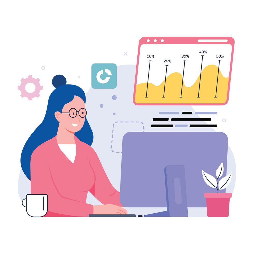 Person monitoring chart, flat illustration of data analysis Pro Vector
