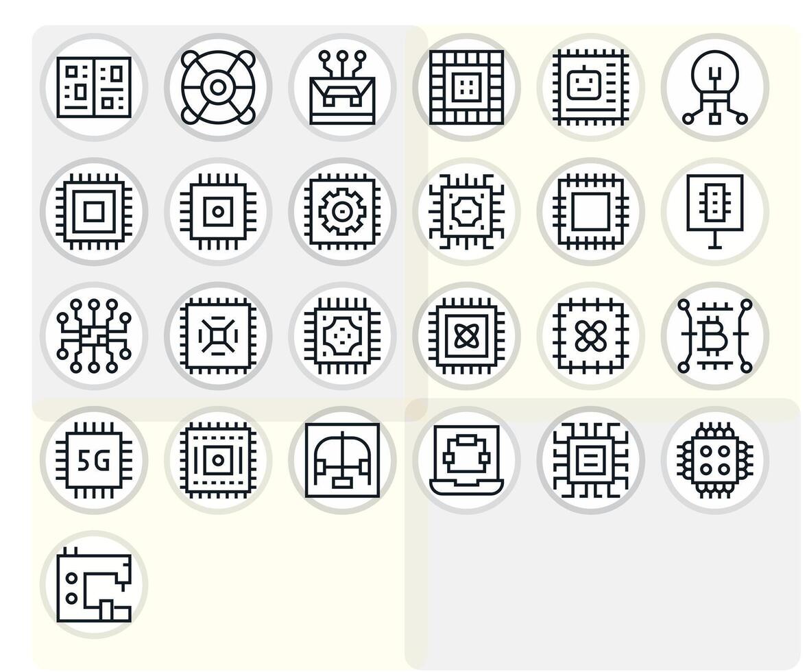 Processor Modern Collection with 25 Regular Line 128x128 Pixel Aligned Icons vector