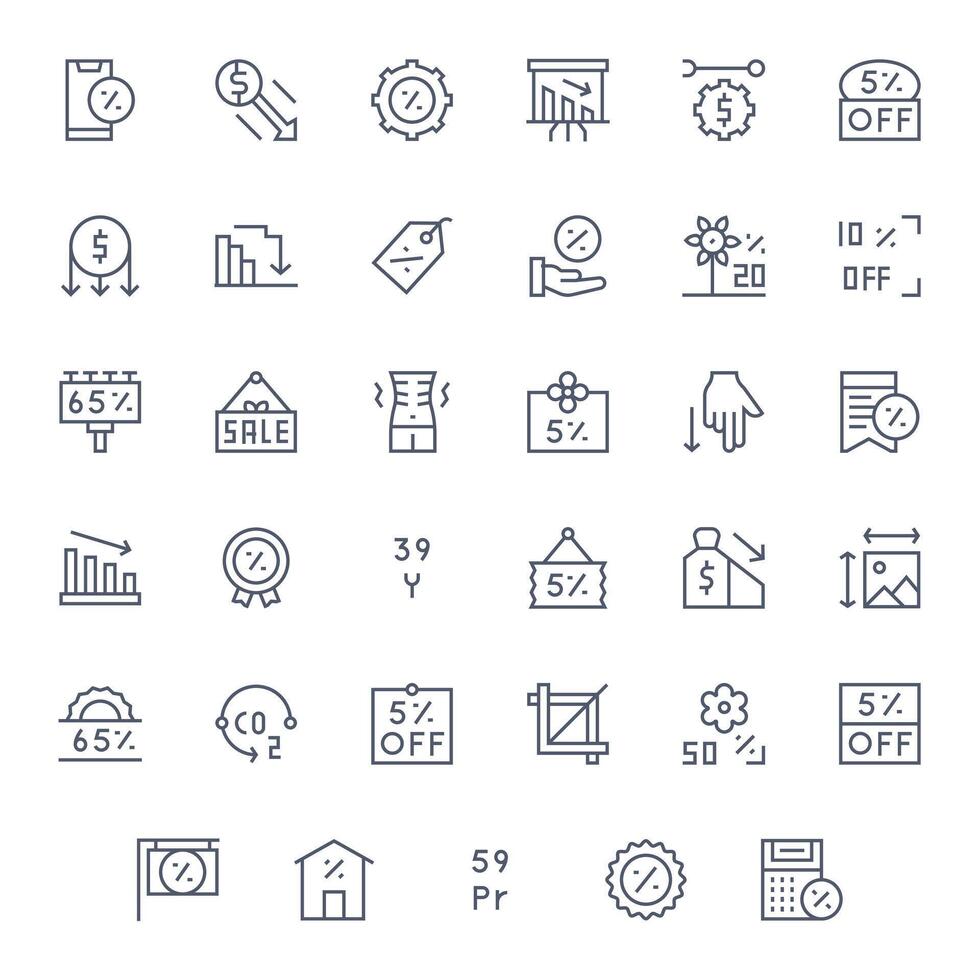 35 Icons for Reduction featuring High Resolution Pixel Optimized Regular Line Graphics Free Vector