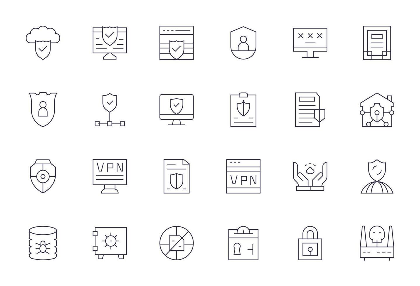 24 Thin Line Pixel Optimized Vectors for Digital Security Theme Free Vector