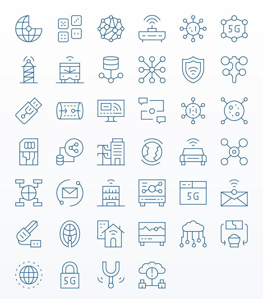 40 Icons for Connectivity optimized in PIXEL Perfect 128x128 Thin Line resolution vector