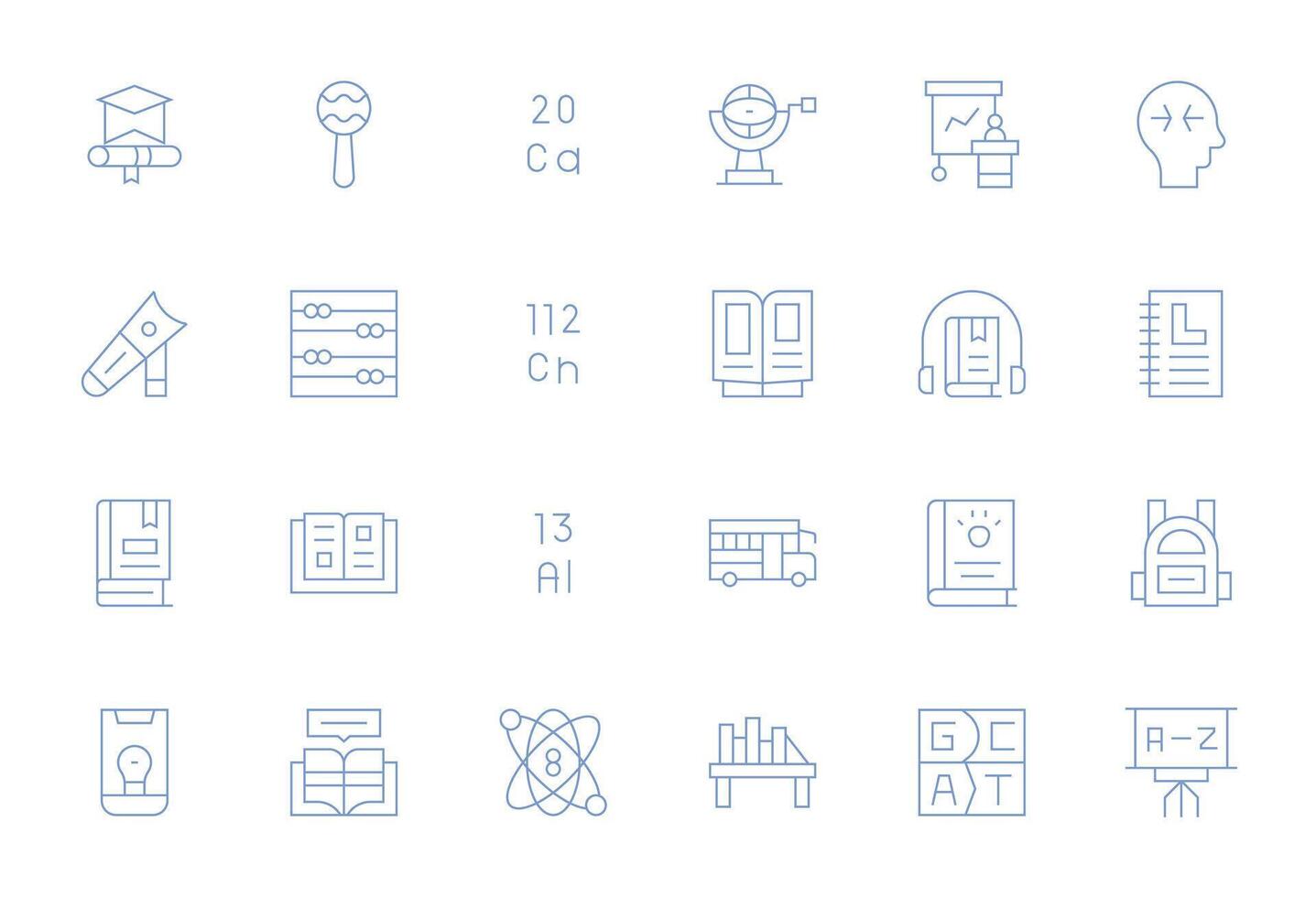 Learning Professional Set with 24 Thin Line Pixel Optimized 64x64 Icons vector
