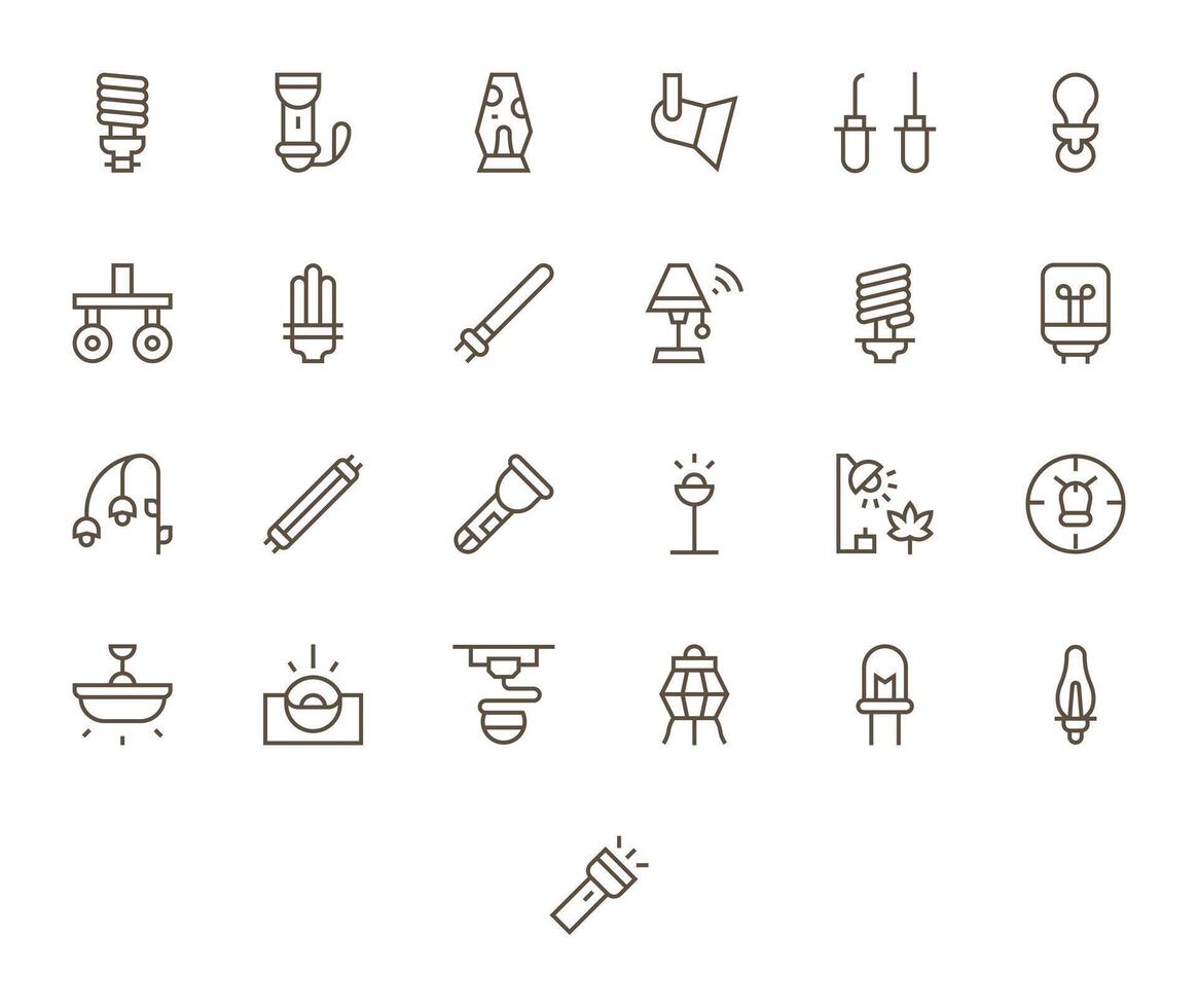 25 Regular Line Icons designed for Lamp in 64x64 Grid Fitted format Free Vector
