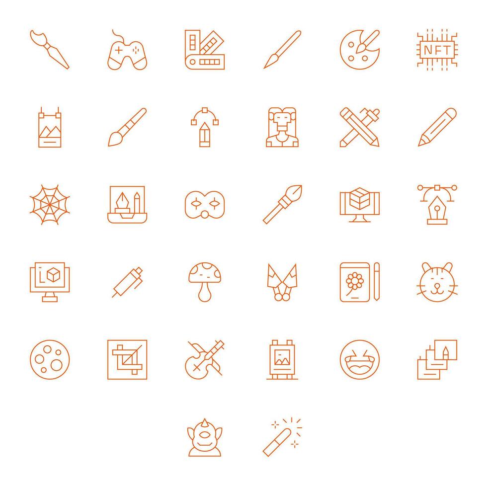 Digital Art Professional Set with 32 Thin Line Pixel Optimized 128x128 Icons Free Vector