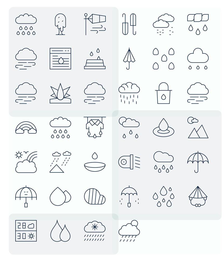 Rain Icon Set with 40 Thin Line High Resolution PIXEL Perfect Graphics Free Vector