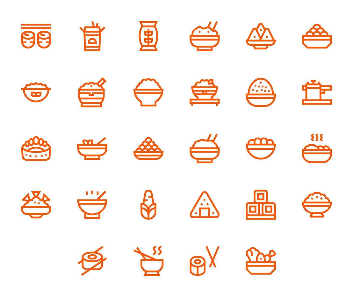 28 High Resolution Bold Line Icons for Rice with Pixel Aligned precision Free Vector