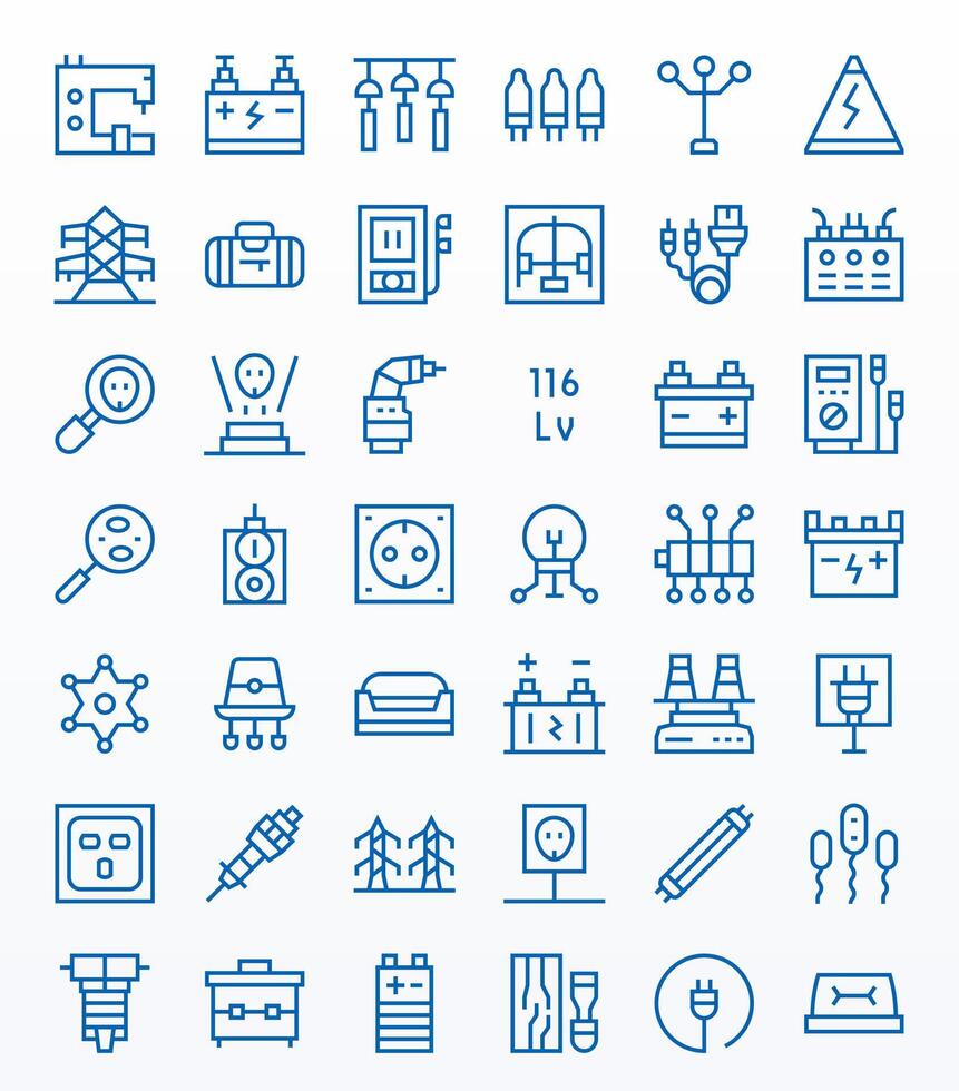 42 128x128 Regular Line Pixel Aligned Icons for Electrical Projects vector