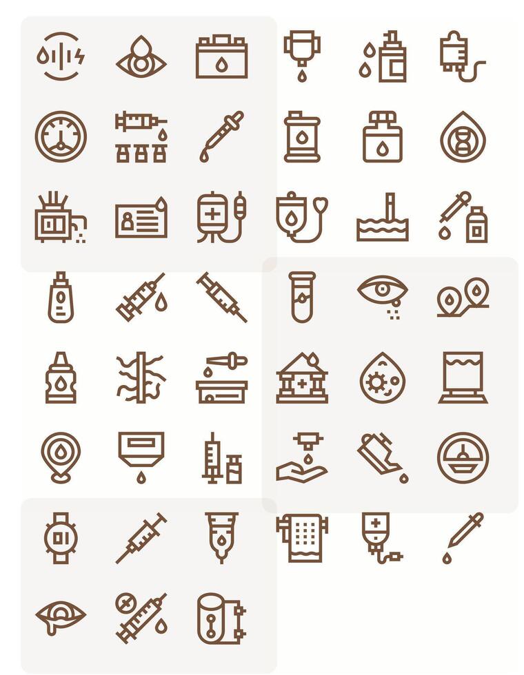 45 Icons inspired by Fluid in Display Perfect High Resolution Bold Line quality Free Vector