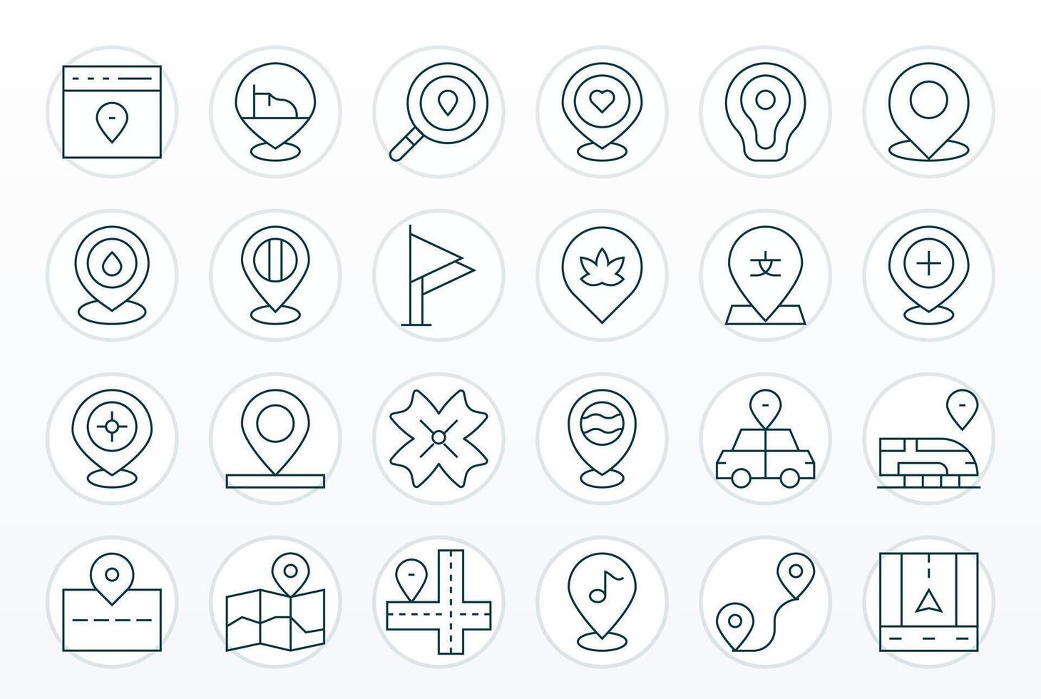 Map Marker Design Icons featuring 24 Pixel Aligned Thin Line Style vector
