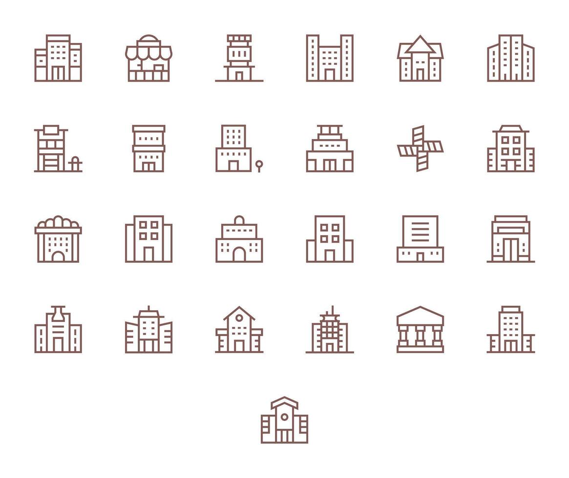 25 Icons for Commercialbuilding featuring High Resolution Grid Fitted Regular Line Graphics vector