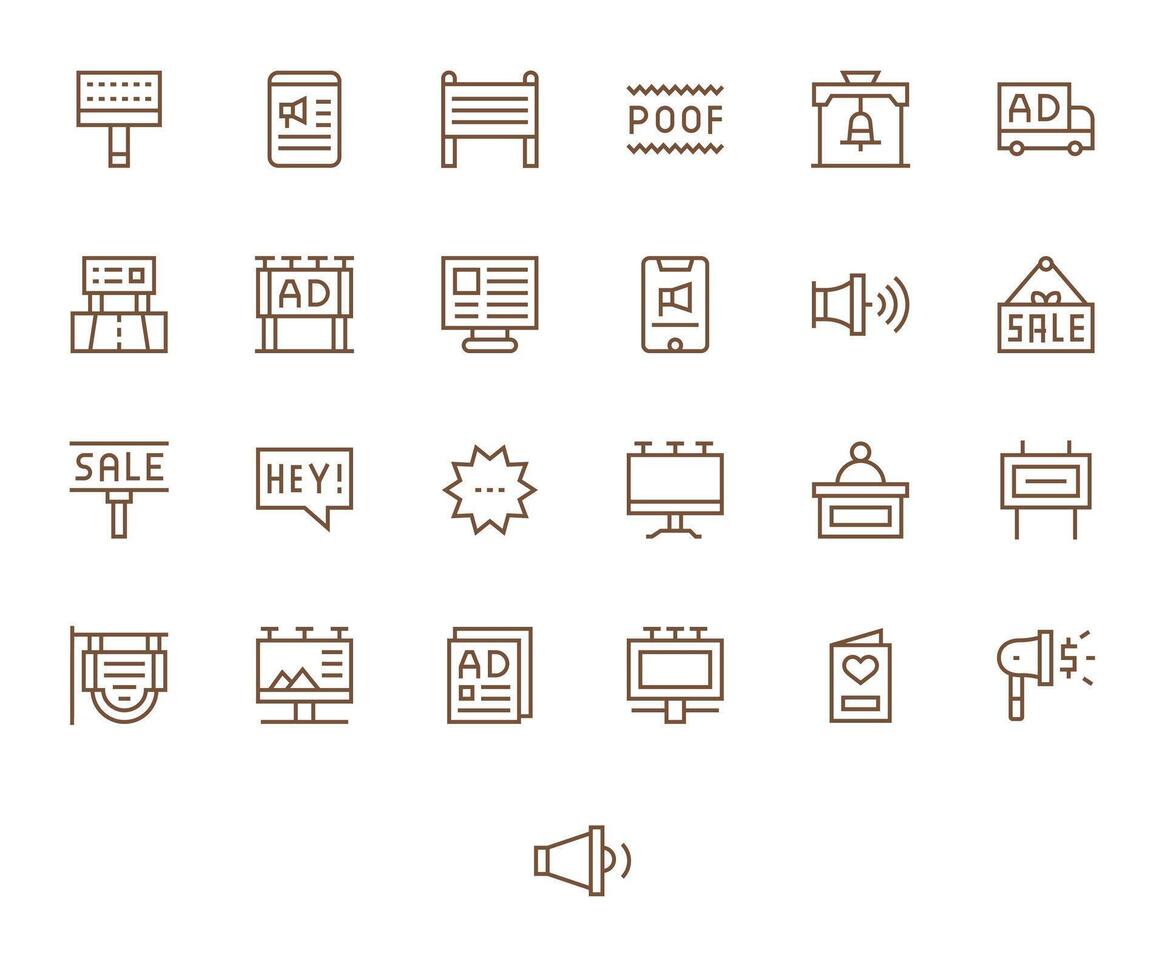 Announcement Icon Toolkit featuring 25 PIXEL Perfect High Resolution Regular Line elements vector