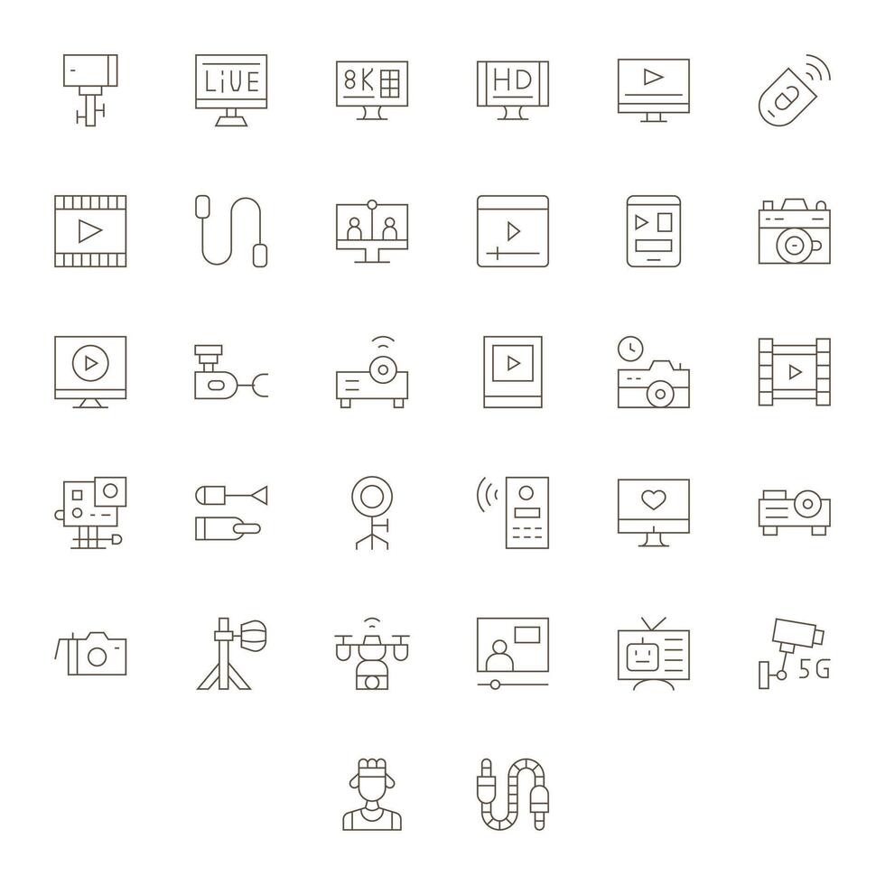 Complete Package with 32 High Resolution Thin Line Detail Enhanced Icons Free Vector