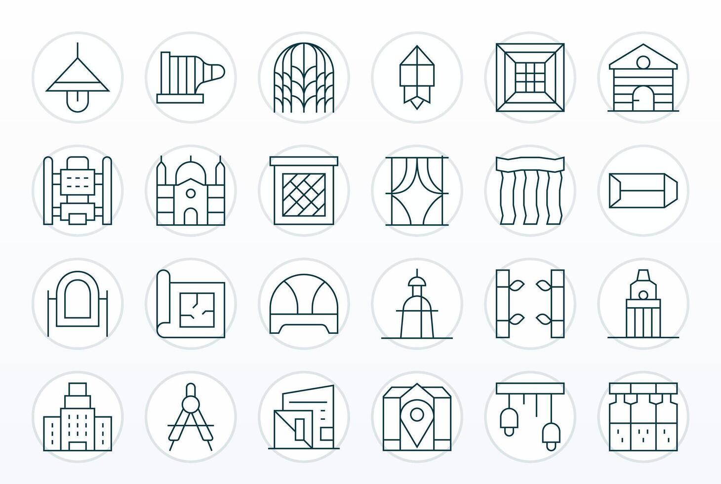 24 64x64 Thin Line Icons for Architectural with Pixel Optimized precision vector
