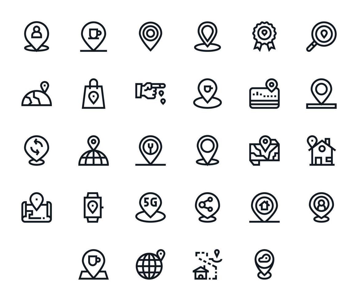 28 Retina Ready Icons for Geolocation in Pixel Aligned Bold Line Format vector