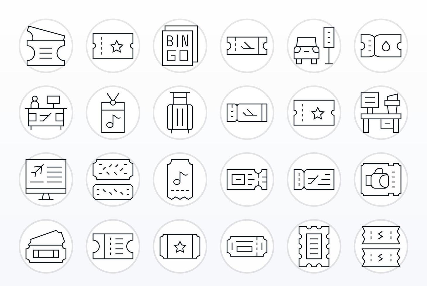 Ticket Icon Toolkit featuring 24 Grid Fitted 128x128 Thin Line elements vector