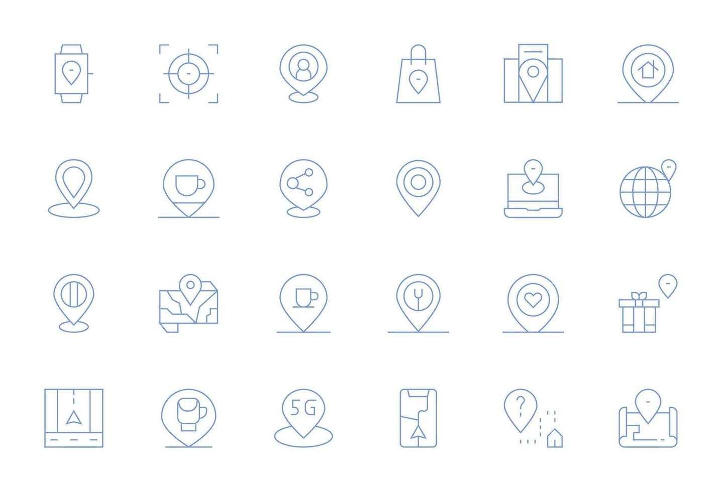 24 High Resolution Display Perfect Icons for Geolocation in Thin Line Theme Free Vector