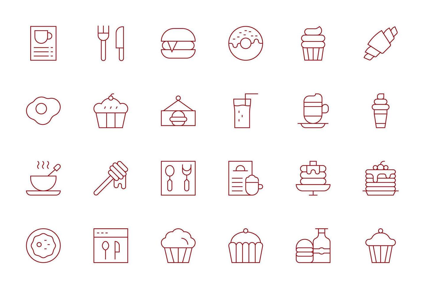 Cafe Menu Icon Toolkit featuring 24 Editable High Resolution Thin Line elements Free Vector