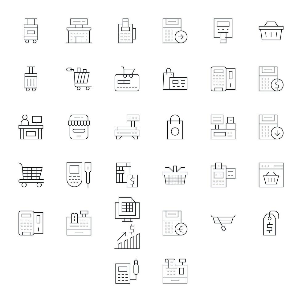 32 Thin Line Pixel Aligned Icons tailored for Checkout High Resolution interface vector