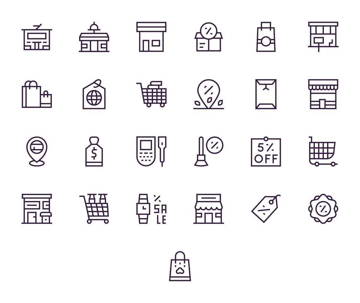 Retailer Icon Set with 25 Regular Line 64x64 Pixel Optimized Graphics Free Vector