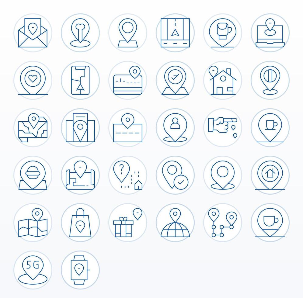 Geolocation Complete Package with 32 128x128 Thin Line Pixel Optimized Icons vector