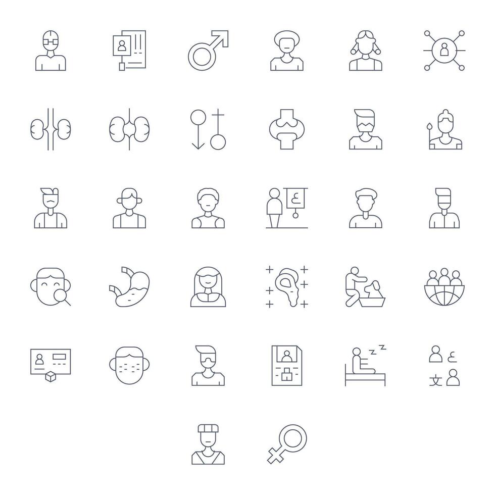 Human Icon Set with 32 Thin Line High Resolution Grid Fitted Graphics vector