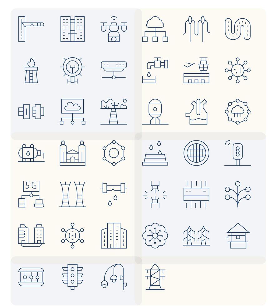 40 256x256 Display Perfect Icons for Infrastructure in Thin Line Theme Free Vector