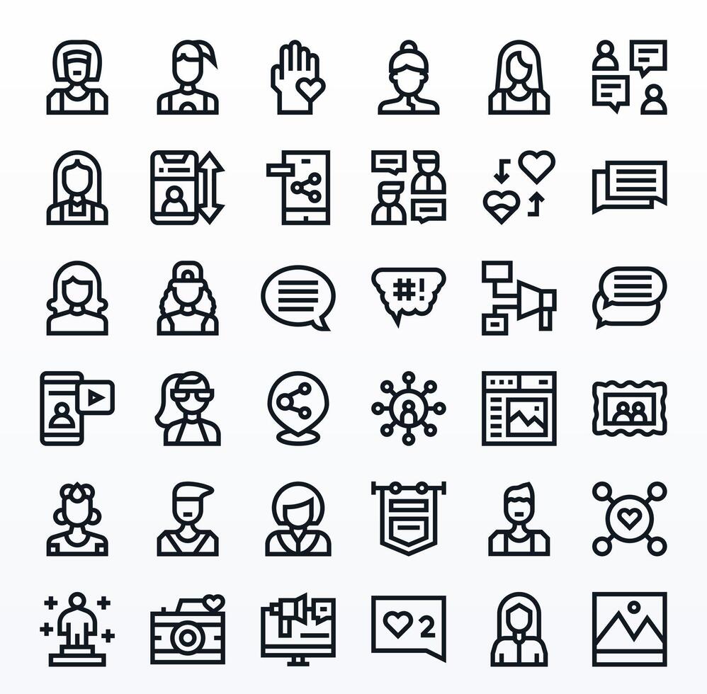 36 Display Perfect Icons themed around Social Media in High Resolution Bold Line format vector